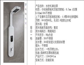產(chǎn)品名稱:一體式淋浴屏 高端花灑 [ ]