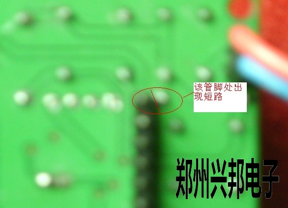 在主板背面測出二極管和指示燈管腳處電路出現(xiàn)短路。(如下圖所示)