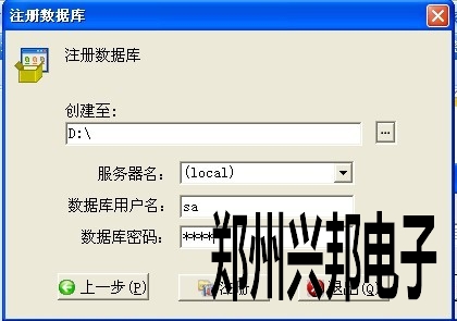 四、選擇存放數(shù)據(jù)庫的路徑后,選擇本地服務器并且輸入數(shù)據(jù)庫的用戶名和密碼。點擊‘注冊’出現(xiàn)如圖五所示: