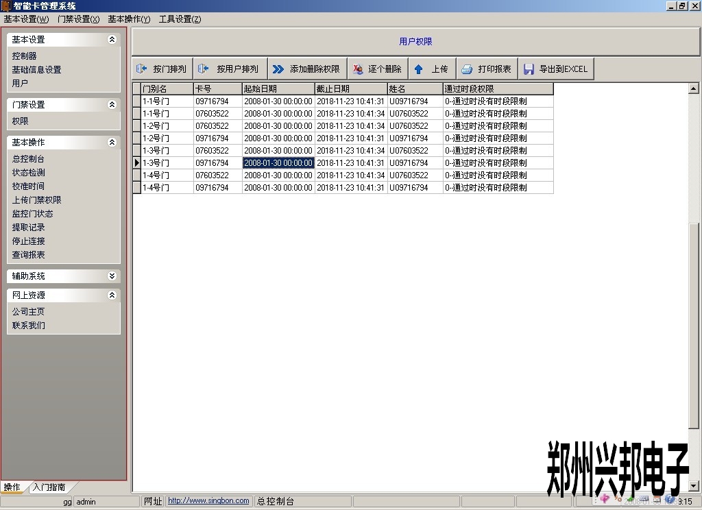 點擊菜單門禁設置—>權(quán)限。進入卡信息開門權(quán)限管理界面。如下圖