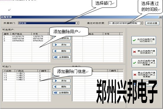 允許已選用戶通過已選定門:把選擇的用戶的開門權(quán)限加到數(shù)據(jù)庫中??梢栽偻ㄟ^上傳功能進行上傳到控制器中。