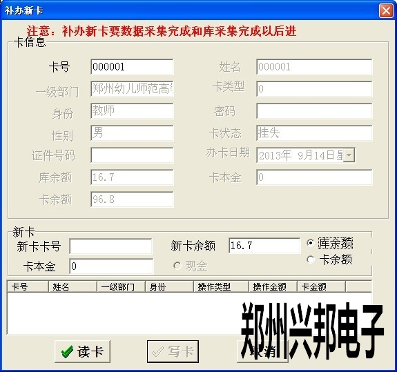 2)若采集時(shí)以窗口及時(shí)間為準(zhǔn),補(bǔ)辦時(shí)可選擇按卡余額補(bǔ)辦,但也要保證數(shù)據(jù)及時(shí)準(zhǔn)確的采集,若在補(bǔ)辦前數(shù)據(jù)沒(méi)有完全采集,補(bǔ)辦時(shí)的金額也是不準(zhǔn)確的。