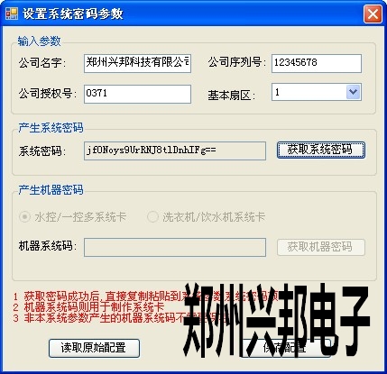 4) 系統(tǒng)密碼:跟卡的加密有關(guān),單擊【設置密碼】出現(xiàn)圖輸入卡的加密參數(shù)(根據(jù)公司所提供的信息填寫),單擊【獲取系統(tǒng)密碼】,單擊【保存配置】。將獲取的密碼粘貼到系統(tǒng)密碼后面的空白處。再次打開該窗口時可以單擊【讀取原始密碼】,獲得卡的加密信息。