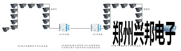施工方采用485中繼器解決上述問(wèn)題。在A,B教學(xué)樓里面各放一個(gè)485中繼器,等于把一個(gè)485網(wǎng)絡(luò)分成了3個(gè)485網(wǎng)絡(luò),這樣485網(wǎng)絡(luò)就可以很穩(wěn)定的運(yùn)行。再由于教學(xué)樓之間的200m的距離是在兩個(gè)485中繼器中間,即使有強(qiáng)電干擾,由于485中繼器中防雷保護(hù)和光隔離功能,也會(huì)被其所吸收,隔離。從而保證了485網(wǎng)絡(luò)的穩(wěn)定性及安全性。