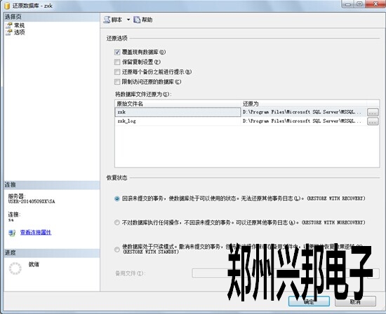 把導入的bak文件勾選上,在指定了要還原的*.bak文件以后,選項---->設置還原選項--->覆蓋現(xiàn)有數(shù)據(jù)庫(選上),其它默認。