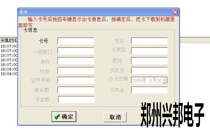 輸入卡號,然后按回車鍵,卡里面所存入的信息都會顯示出來,然后點確認,會出現(xiàn)一個掛失成功的提醒。這時,卡就掛失成功了。如果不知道卡號,可以在卡信息表時根據(jù)姓名,證件號等來查詢卡號,然后再操作上面的這一步。