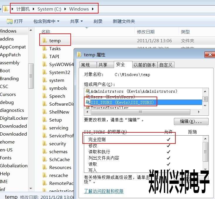 客戶購買了我們CAN平臺的IC卡食堂刷卡機,在安裝CAN軟件的時候提示配置有誤,重新配置后還是這樣,然后瀏覽webservice時出現(xiàn)以下錯誤: CS0016: 未能寫入輸出文件給C:\Windows\temp 文件夾賦予完全控制權(quán)限.