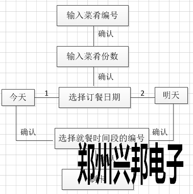 簡(jiǎn)易模式下訂餐操作方法:輸入菜肴編號(hào),點(diǎn)擊[確認(rèn)]后輸入菜肴份數(shù),點(diǎn)擊[確認(rèn)]后選擇訂餐日期(今天或者明天),點(diǎn)擊[確認(rèn)]后選擇訂餐的時(shí)間段(共有12個(gè)時(shí)間段),輸入時(shí)間段編號(hào)點(diǎn)擊[確認(rèn)]后,顯示訂餐的菜肴名稱、份數(shù)和總額,將卡放到刷卡區(qū),聽(tīng)到滴的一聲響后即可訂餐成功,操作流程如下圖所示: