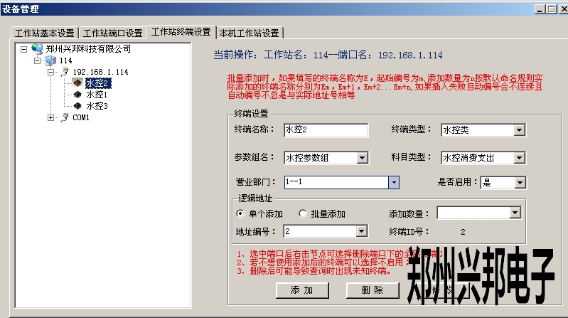 工作站端口設(shè)置完成后,在工作站終端設(shè)置中添加對應(yīng)的終端即可,如下圖所示: