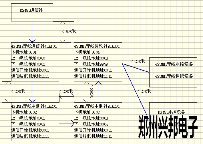 2、一個(gè)433MHZ無線通信器(WLA001)的無線覆蓋范圍為直經(jīng)400米(空曠地區(qū));只要在收發(fā)的范圍內(nèi),可連接的終端設(shè)備的臺數(shù)理論上沒有限制;地址號9998、9999,終端設(shè)備不可用,系統(tǒng)使用;