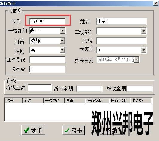 發(fā)行卡片的時候,卡號是遞增的且只有6位,最大卡號為999999,超過之后軟件不能再進行發(fā)卡了,客戶在使用的過程中可以修改卡號,只要卡號在000001-999999之間就可以(注意:卡號只能是數(shù)字,如果輸入錯誤并發(fā)行了會影響后面的發(fā)卡并且不要一下子就把999999的卡號給發(fā)行了,這樣的話你軟件的默認卡號就不能使用了,只能輸入卡號發(fā)行了),但是修改后再發(fā)行的卡的卡號會按照修改后的卡號進行遞增,若想使用之前的卡號必須手動輸入,例如卡號修改為666532之后,再次發(fā)行的卡默認卡號是666533,若想使用之前的卡號必須手動輸入;