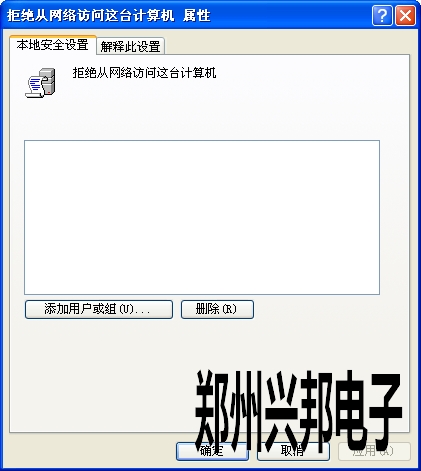 在“拒絕從網(wǎng)絡(luò)訪問”右擊“屬性”把里面的所有賬戶刪除