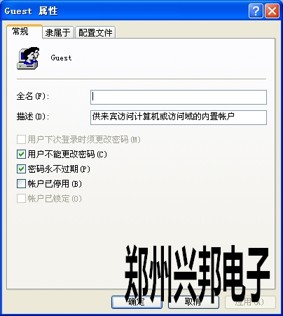 右擊“gust”“屬性”將“賬戶已停用”對勾去掉“確定”