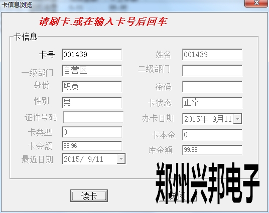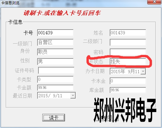 卡片就上面三種狀態(tài),另外一些操作,會造成卡狀態(tài)改變,比如:掛失的卡解掛,就變成消費(fèi)卡;掛失的卡補(bǔ)辦新卡,掛失卡就會變成新卡;消費(fèi)卡被收繳舊卡就變成新卡。新卡在消費(fèi)機(jī)上刷卡會顯示1-Err,消費(fèi)卡會顯示金額,掛失卡會顯示4-Err