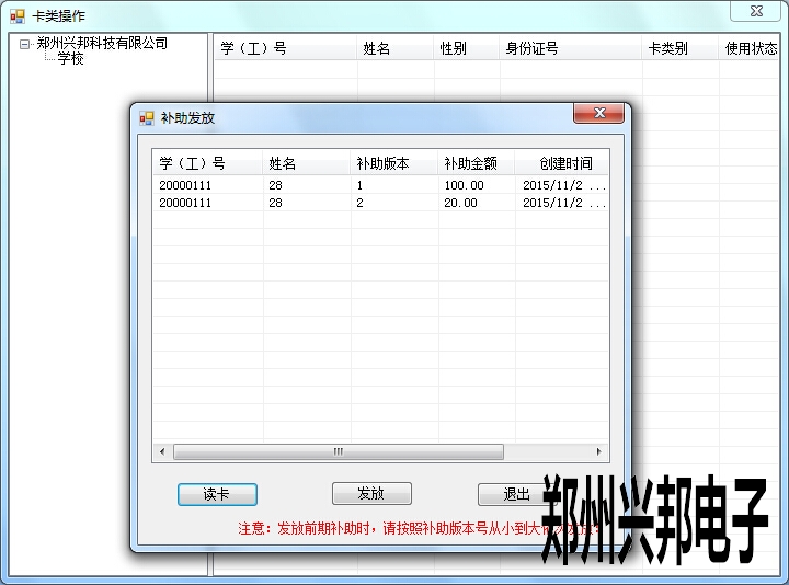 打開互聯(lián)網(wǎng)一卡通平臺,進入制卡中心 -- 卡管理。然后鼠標(biāo)右鍵,選擇 發(fā)放前期補助。