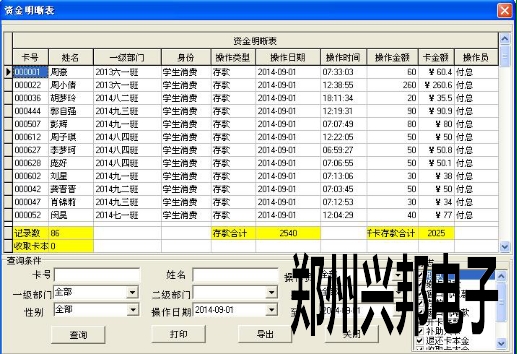 客戶使用的局域網(wǎng)一卡通食堂售飯機,如何在軟件里查詢操作員當天應交的帳,