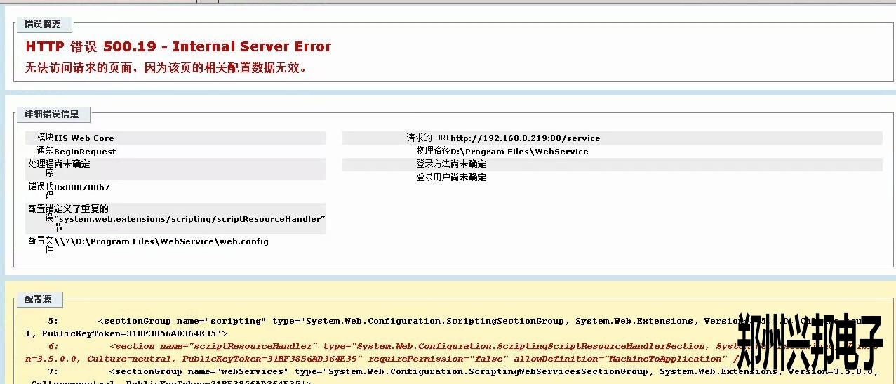 [文章內(nèi)容簡(jiǎn)介]:客戶使用的互聯(lián)網(wǎng)一卡通食堂售飯機(jī),在裝好軟件后配置有誤,瀏覽service時(shí)提示應(yīng)用程序中的服務(wù)器錯(cuò)誤.