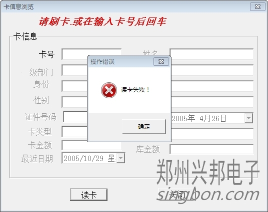 [文章內容簡介]:在讀卡器上讀卡時,操作錯誤提示:讀卡失敗!