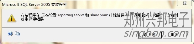 互聯(lián)網(wǎng)一卡通食堂售飯機(jī)的軟件,采集的信息都通過(guò)軟件設(shè)置存在數(shù)據(jù)庫(kù)SQL SERVER2005中,所以安裝軟件,首先要安裝數(shù)據(jù)庫(kù)SQL SERVER2005,但在安裝數(shù)據(jù)庫(kù)SQL SERVER2005時(shí),安裝程序可能會(huì)在正在設(shè)置reporting和shre point 排除路徑 期間遇到錯(cuò)誤,遇到的錯(cuò)誤如圖所示: